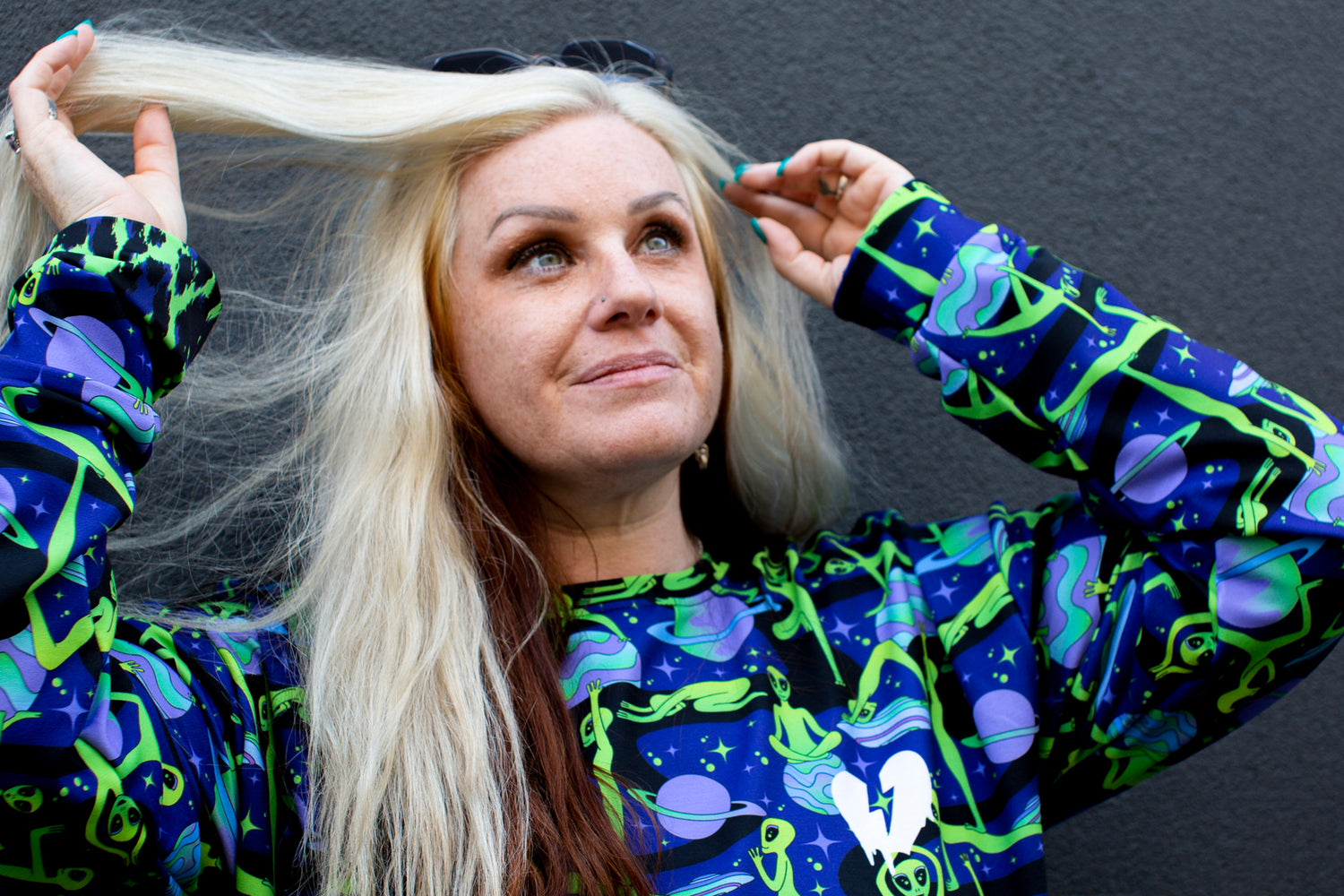 Abbey’s rocking our newest Cosmic Playground gear, designed for ultimate comfort...