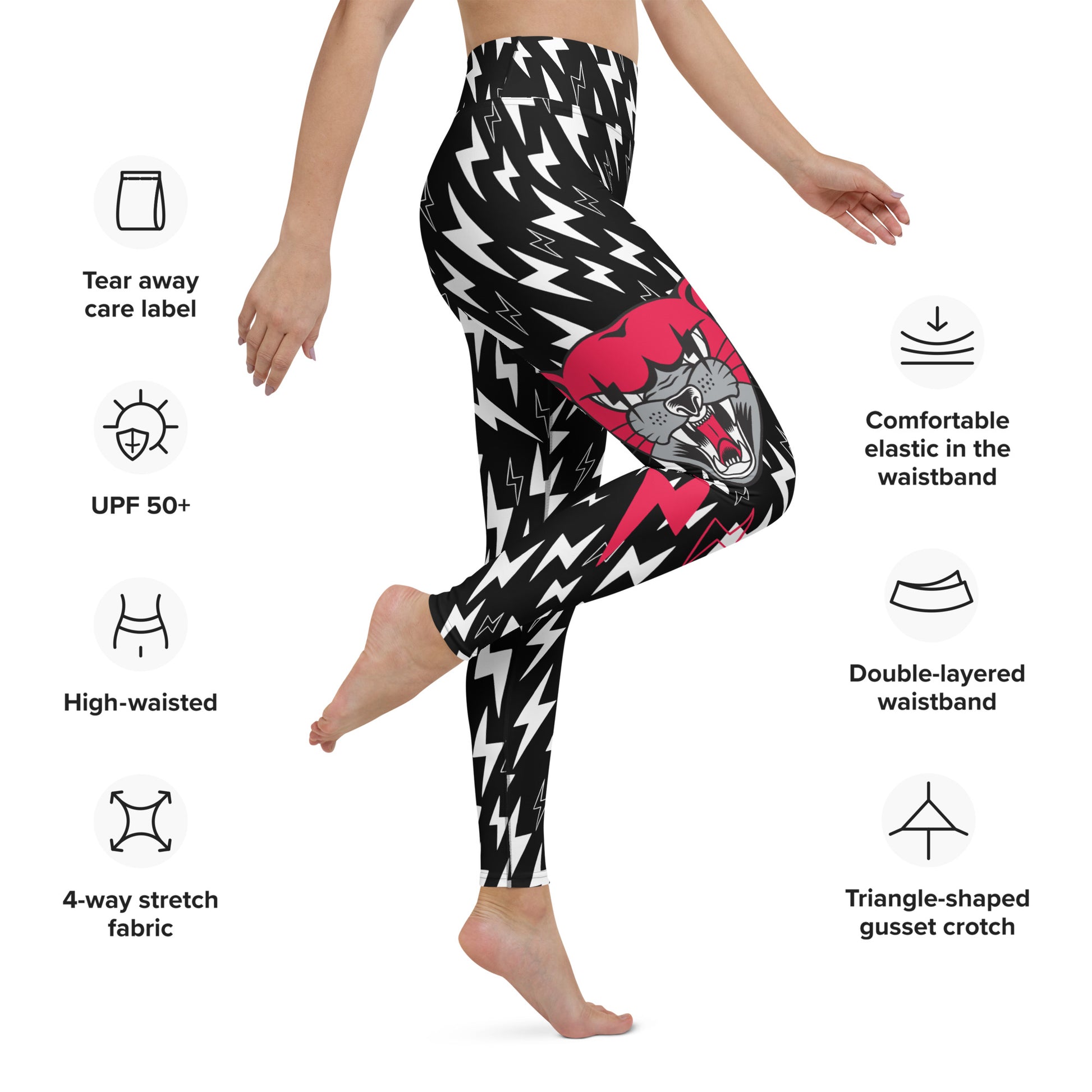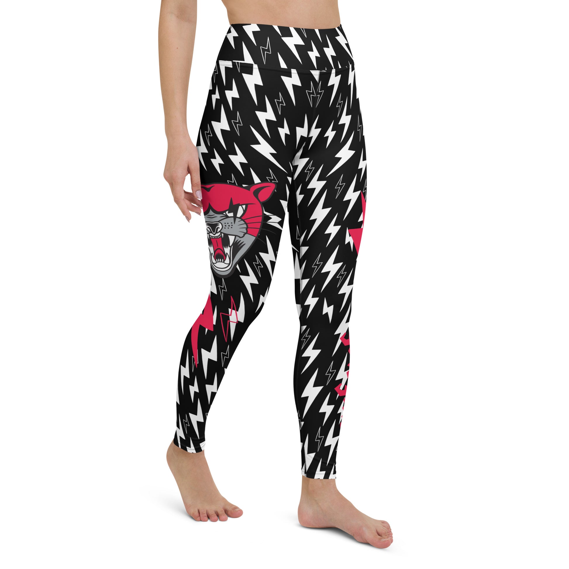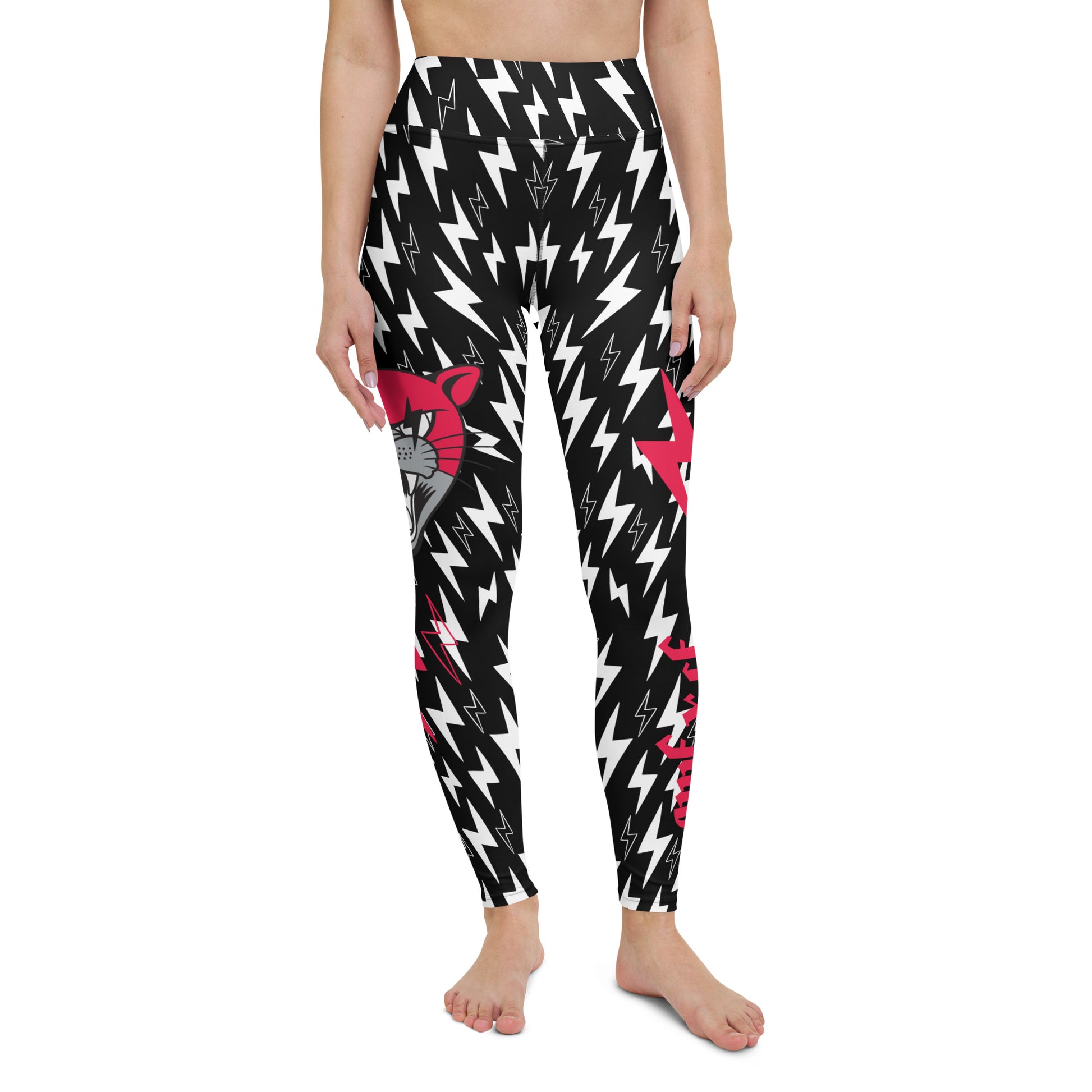 Feel that rumble? Is it the leftovers that you probably should have chucked out OR is it that blood pumping through your body to get through that last set? These full-length leggings are sure to leave them thunderstruck during your workout, that online gig, and on ya couch. You have a triple threat with the THUNDER PANTS LEGGINGS being a lightning-quick choice for your go-to activewear, loungewear or playwear. The thunder pants leggings design features an all-over white bolt on black material with the signature Cat print in POP RED with two magenta bolts on the right side, the AWFxCF logo with two magenta bolts on the left side, and a sneaky logo on the booty.