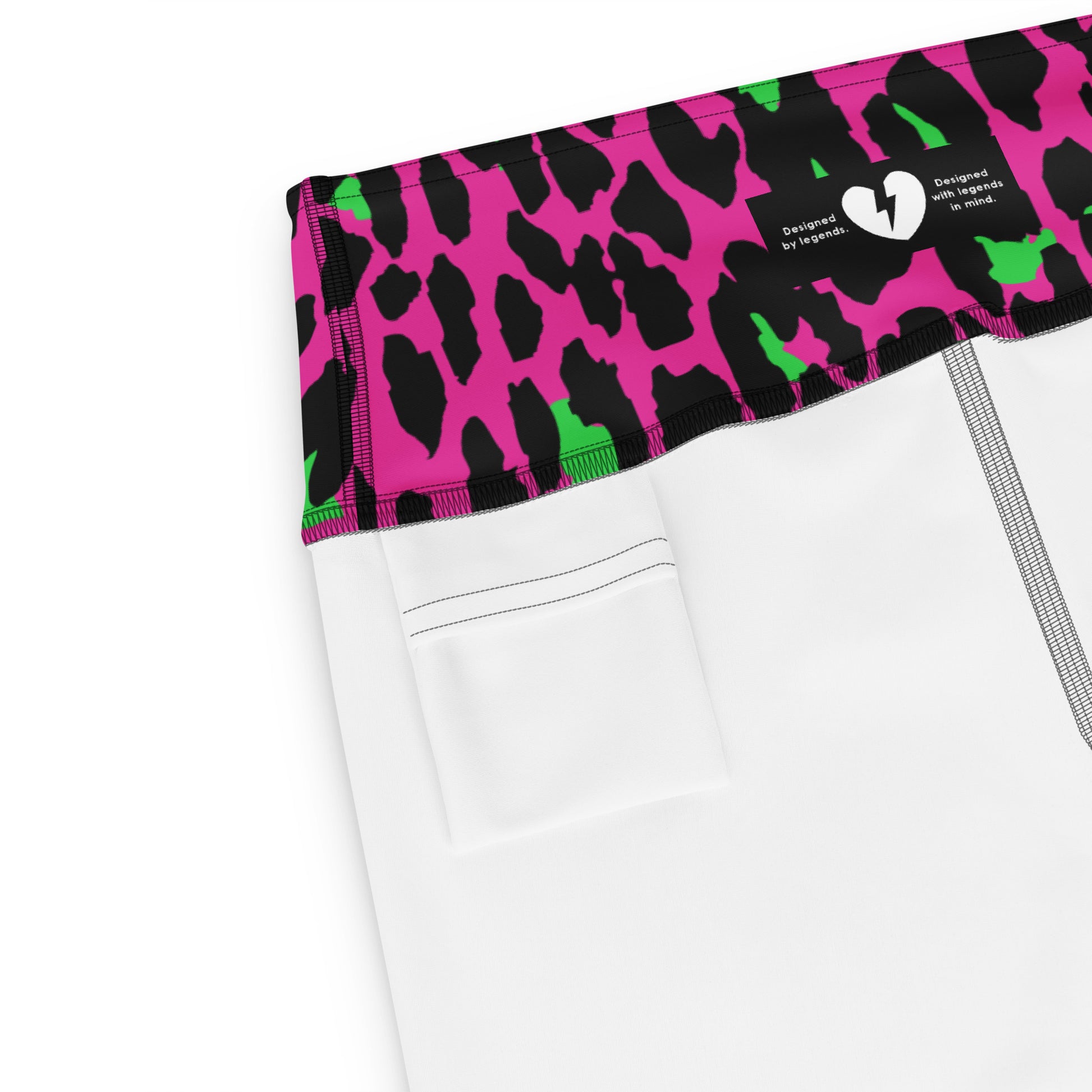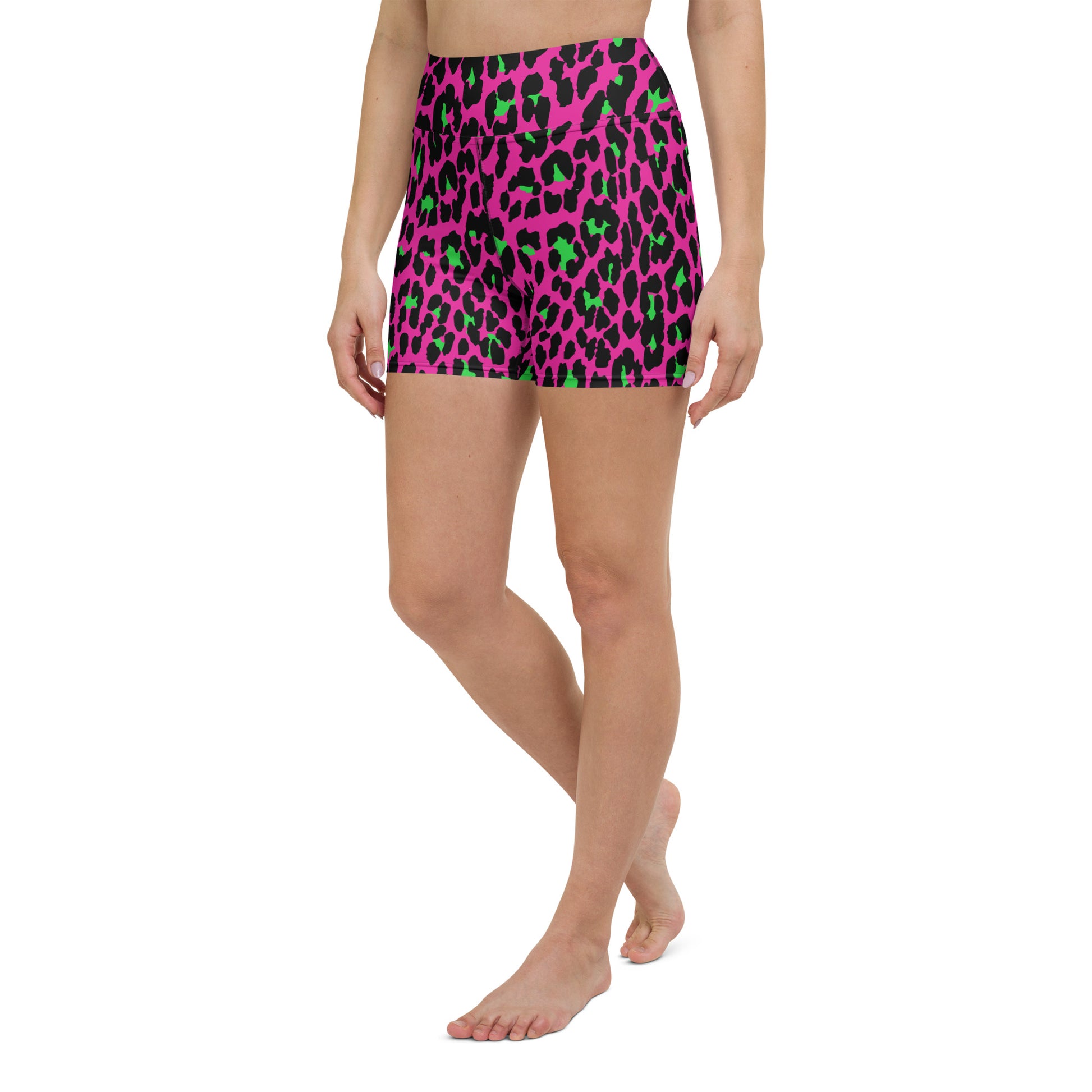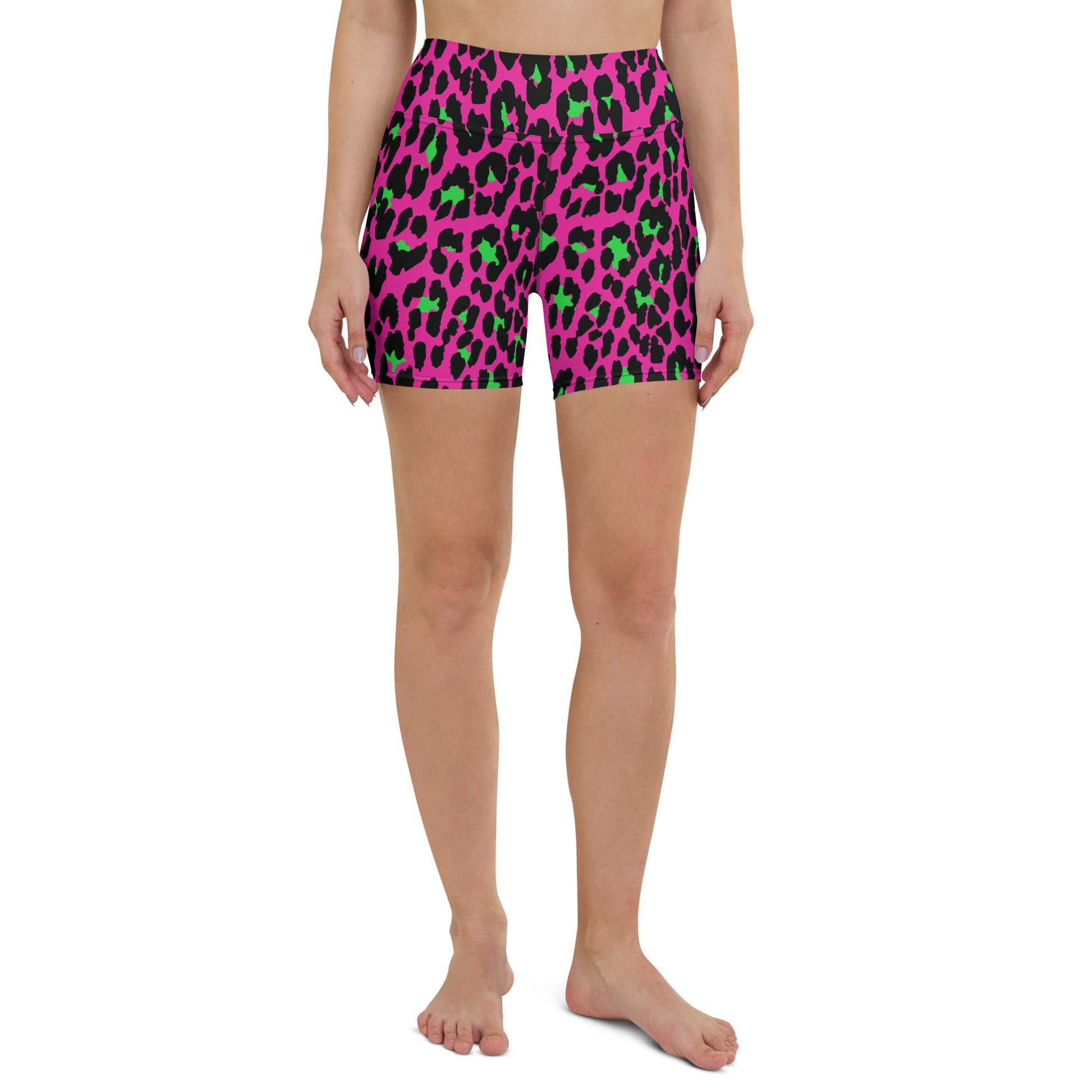 This unique design combines Leopard print in POP PINK, deepest black, and Monster Green. Perfect for displaying your feline ferocity while prowling/rocking around the joint.