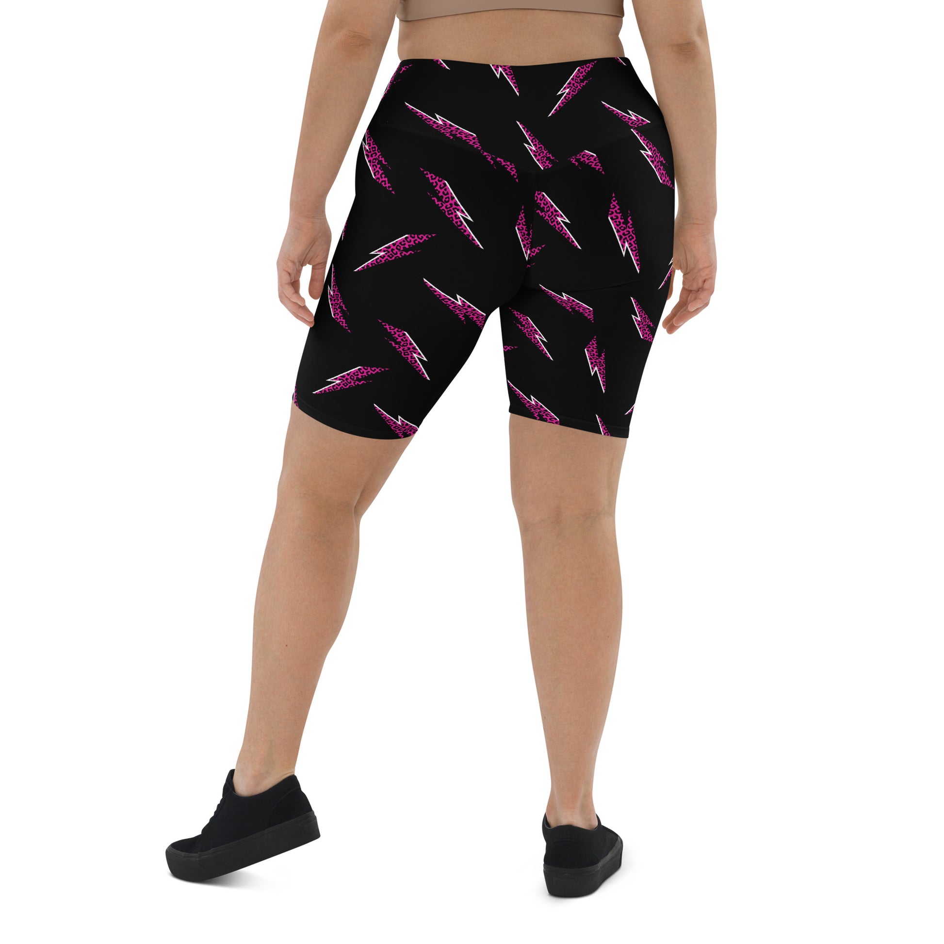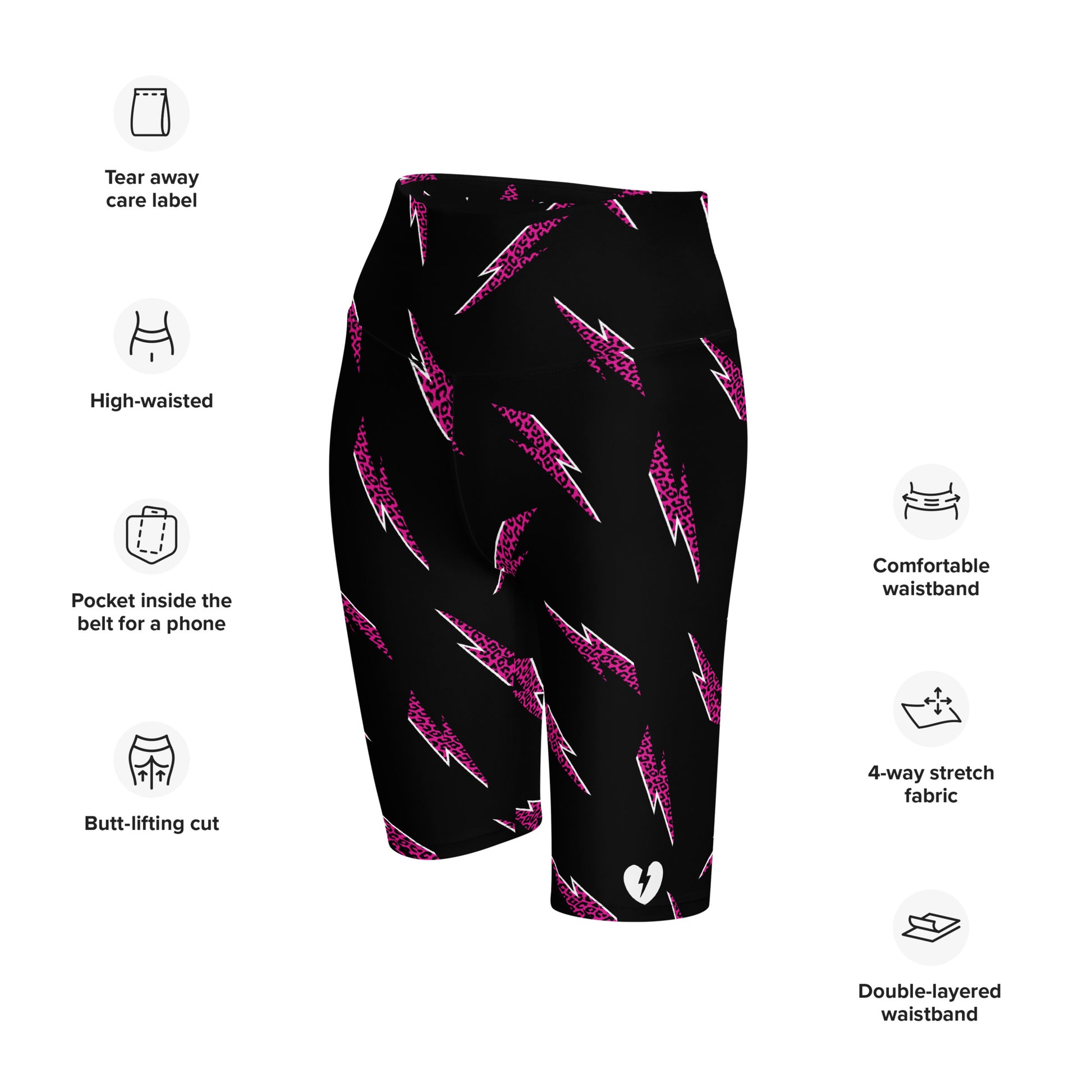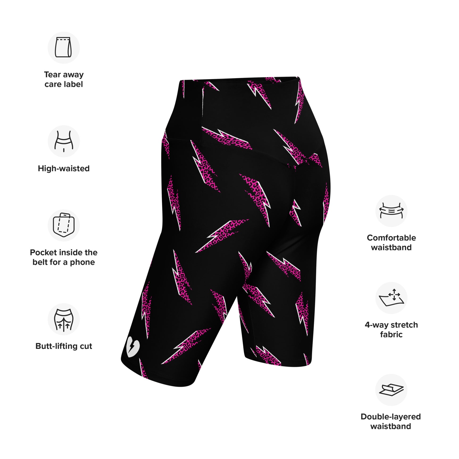HEY REBELLE! Let these high-waisted, flattering long line lightning print bike pants do the butt-lifting for ya? Yeah for reals - that's not sexually harassing ghosts you're feeling; these shorts are designed to lift ya butt.