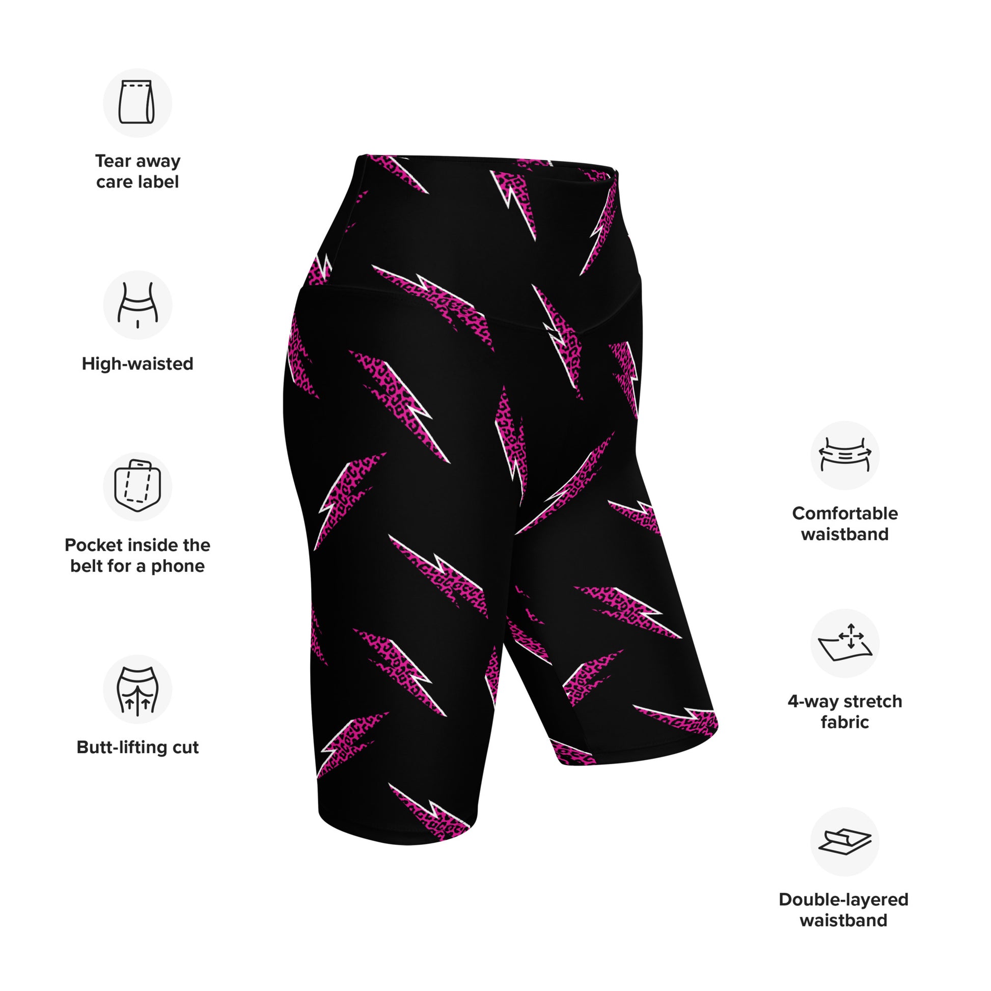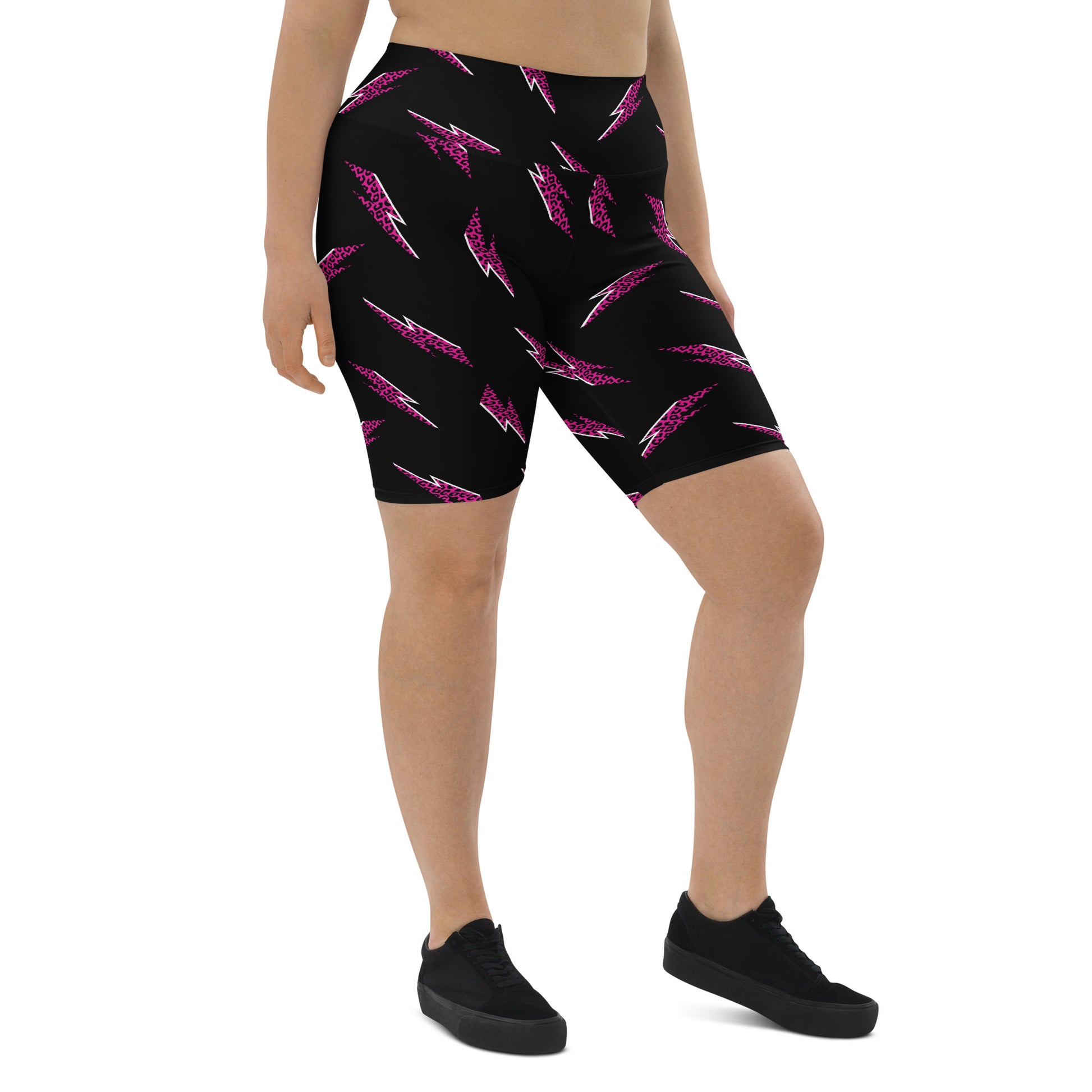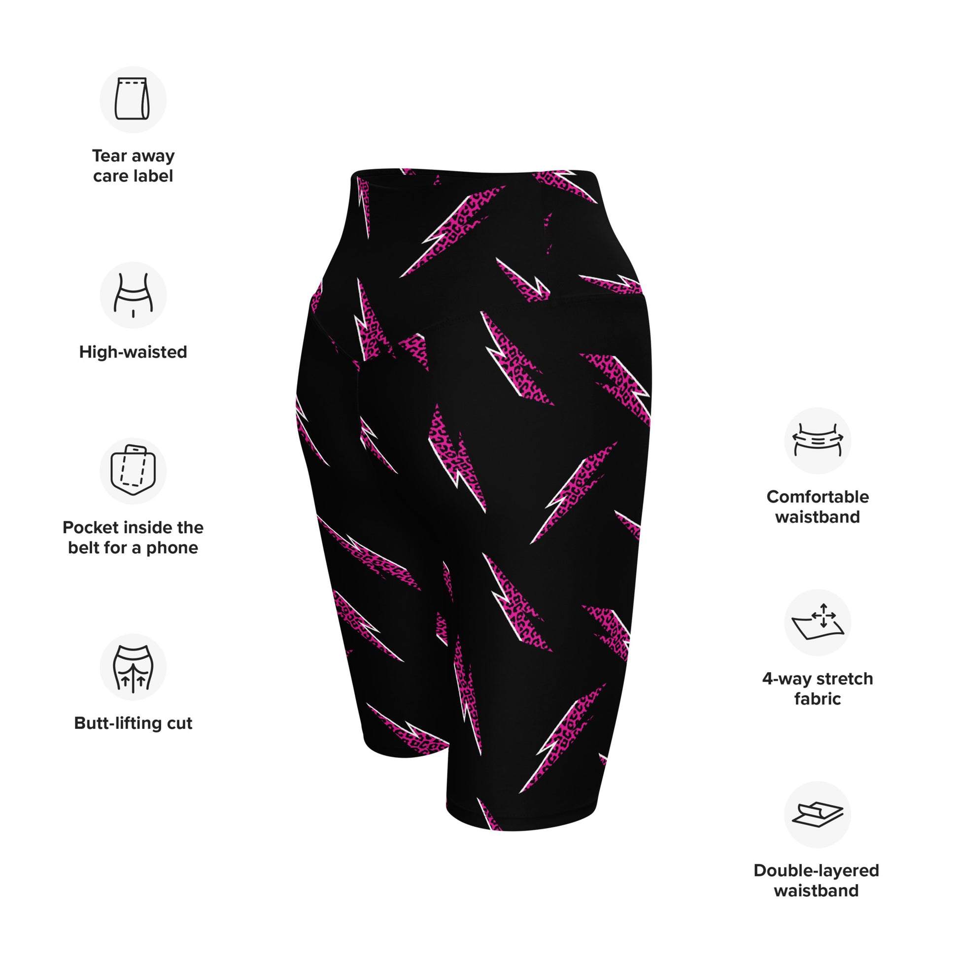 HEY REBELLE! Let these high-waisted, flattering long line lightning print bike pants do the butt-lifting for ya? Yeah for reals - that's not sexually harassing ghosts you're feeling; these shorts are designed to lift ya butt.