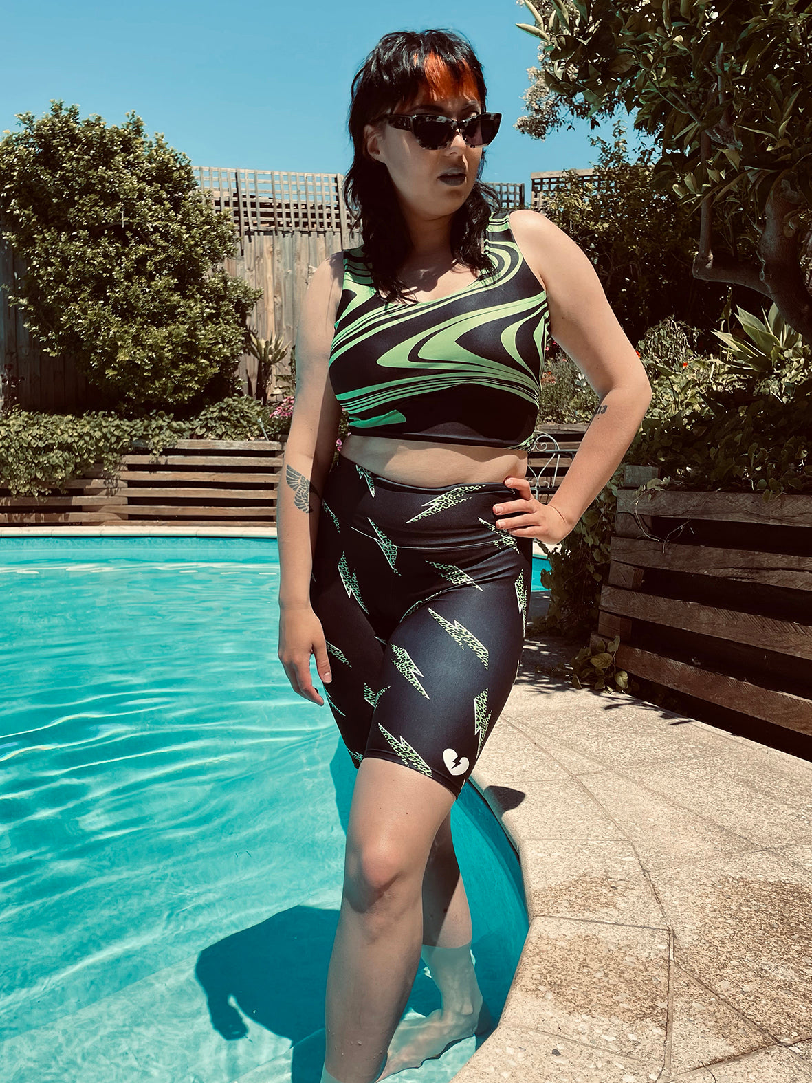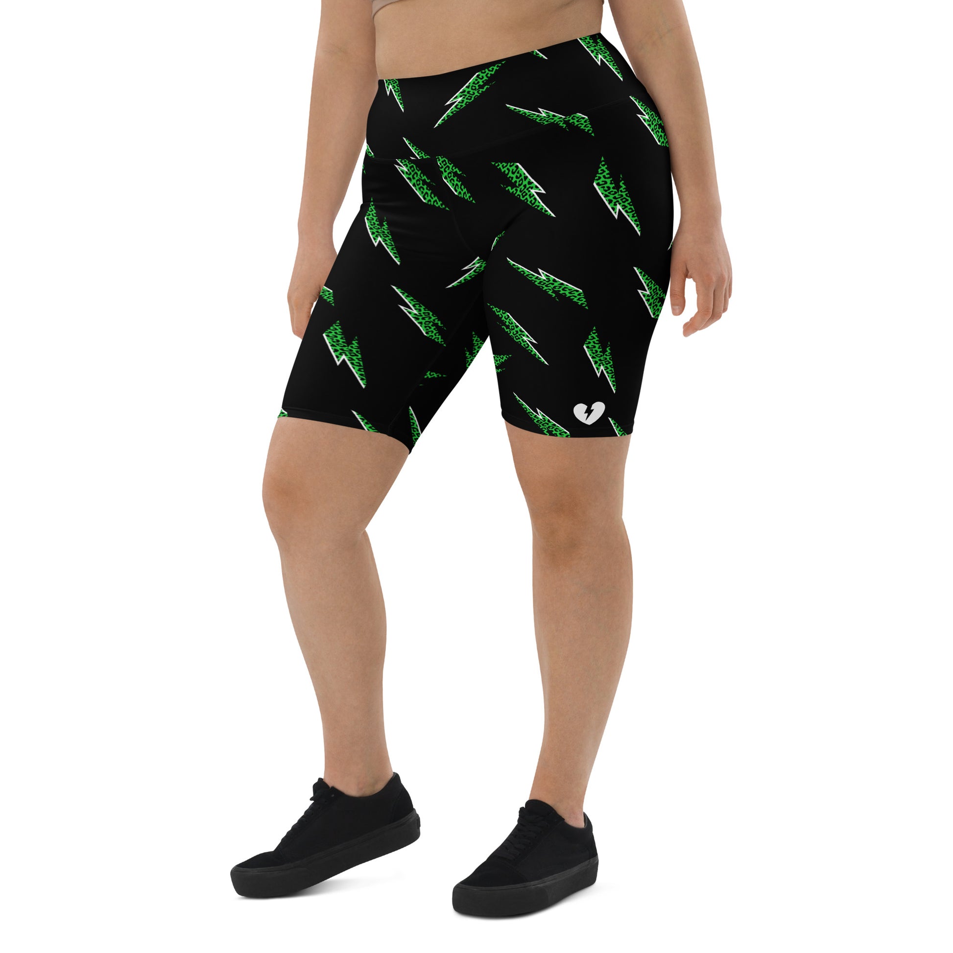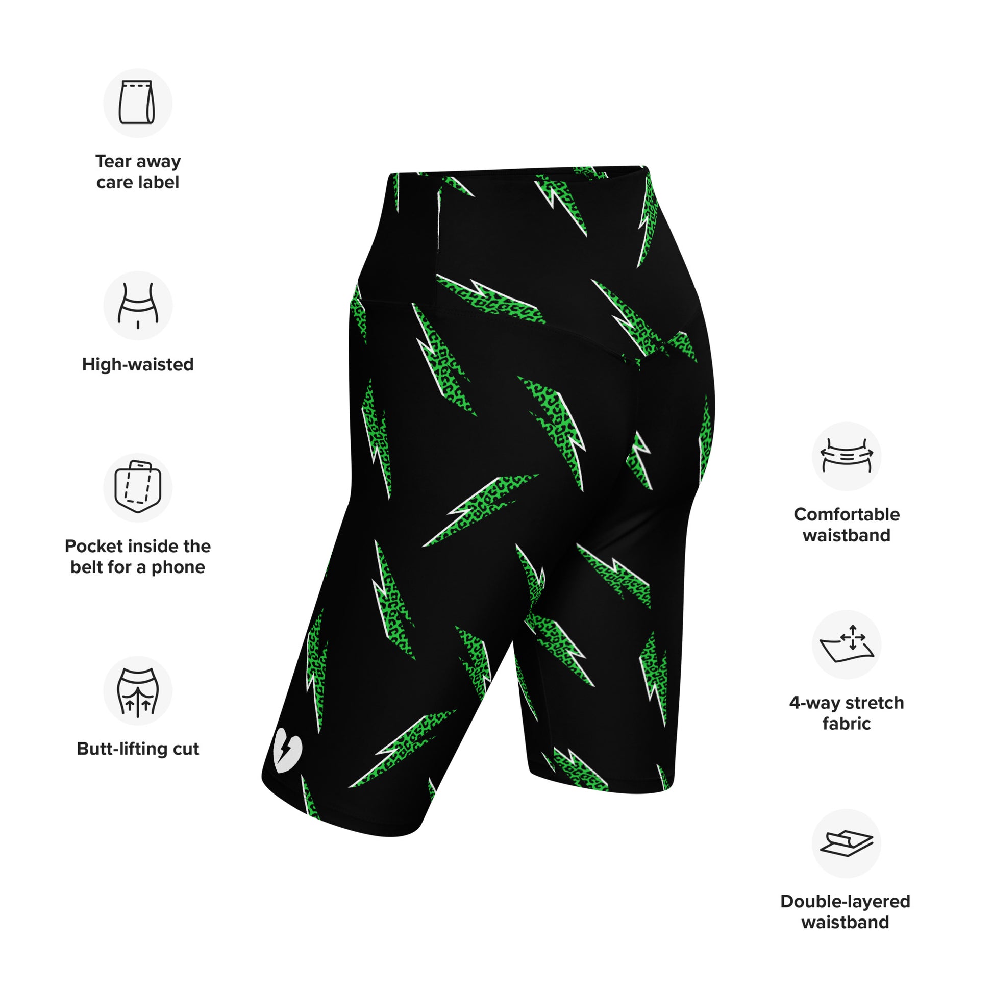 HEY REBELLE! Why don't you let these high-waisted, lightning print, flattering long-line bike pants do the butt-lifting for ya? Yeah for reals - that's not sexually harassing ghosts you're feeling; these shorts are designed to lift ya butts.