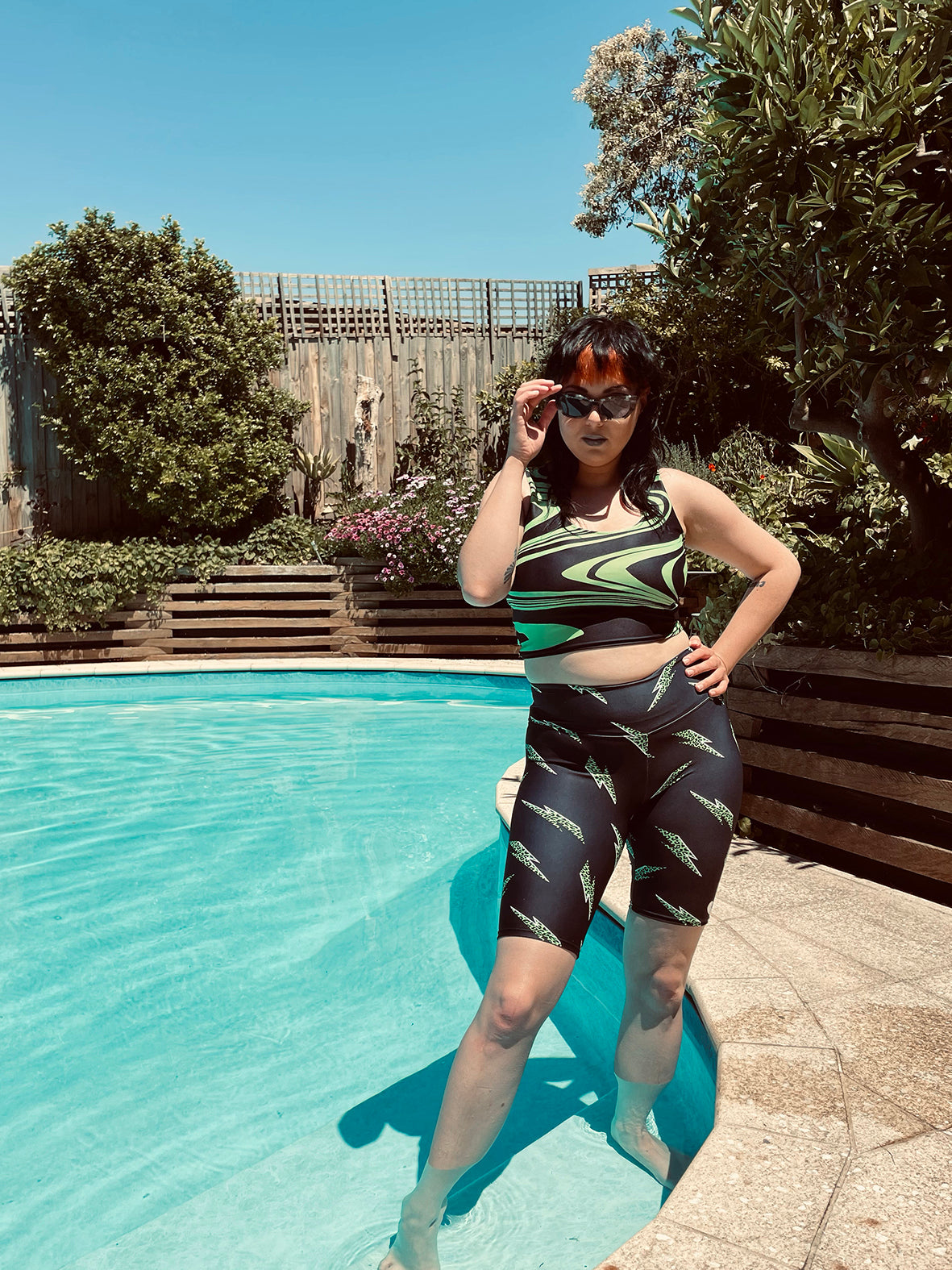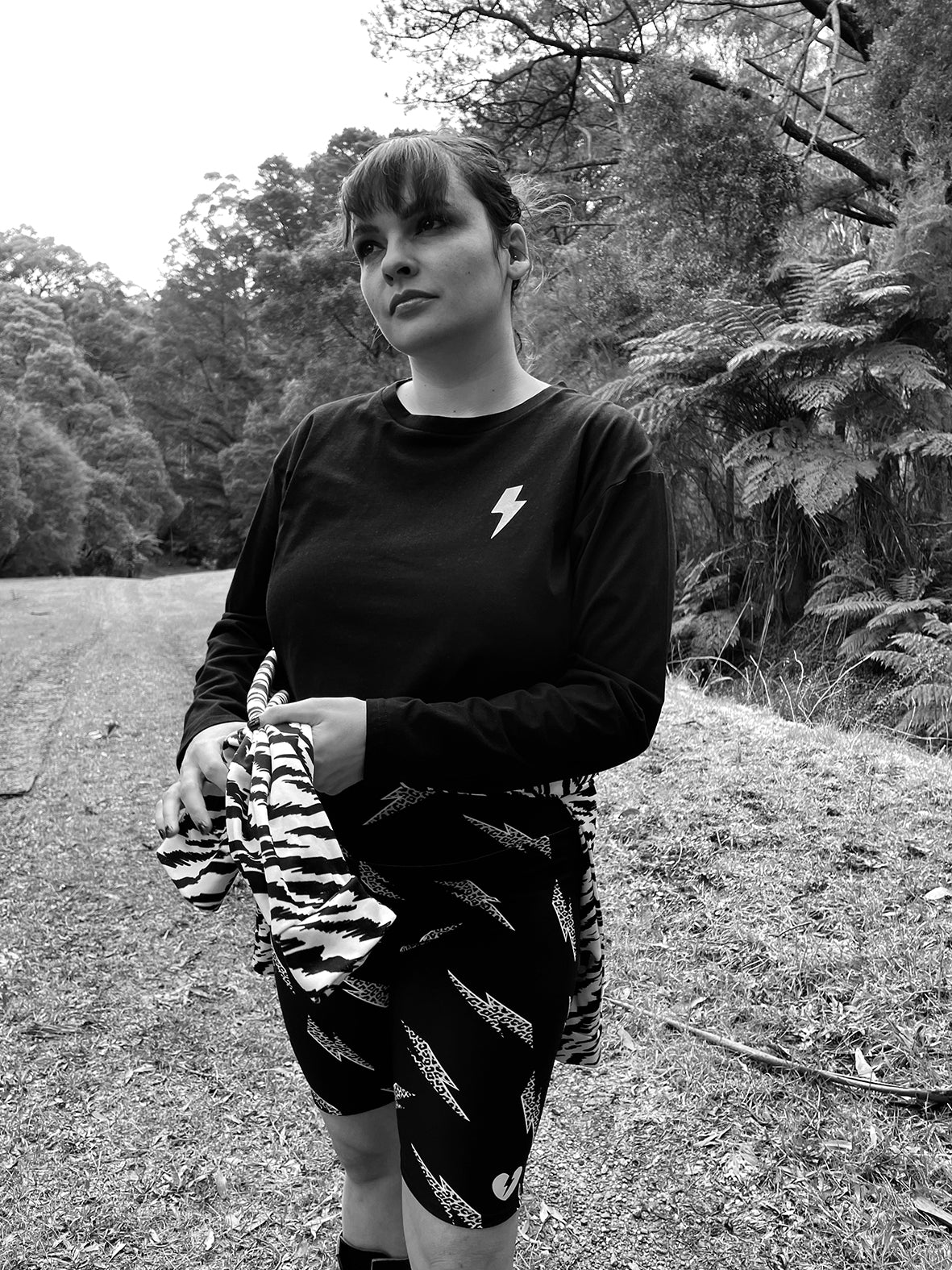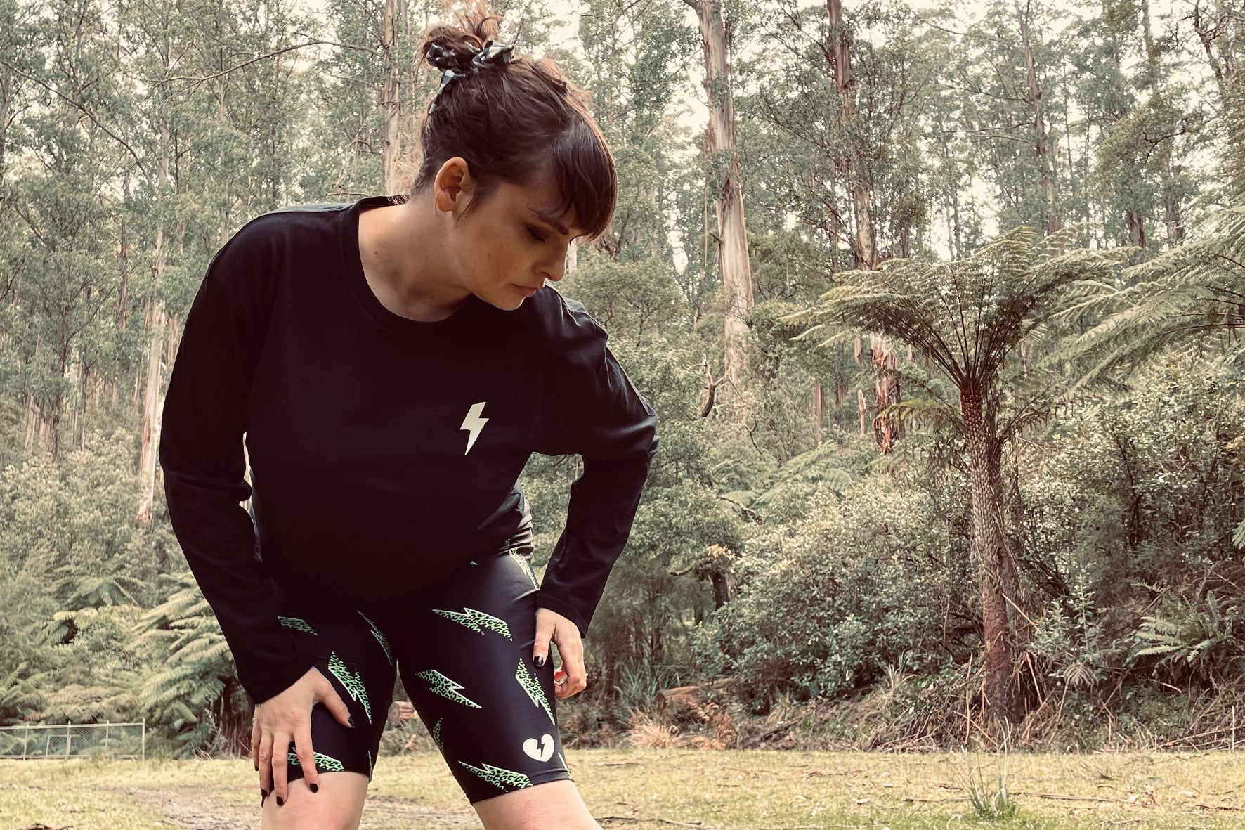HEY REBELLE! Why don't you let these high-waisted, lightning print, flattering long-line bike pants do the butt-lifting for ya? Yeah for reals - that's not sexually harassing ghosts you're feeling; these shorts are designed to lift ya butts.